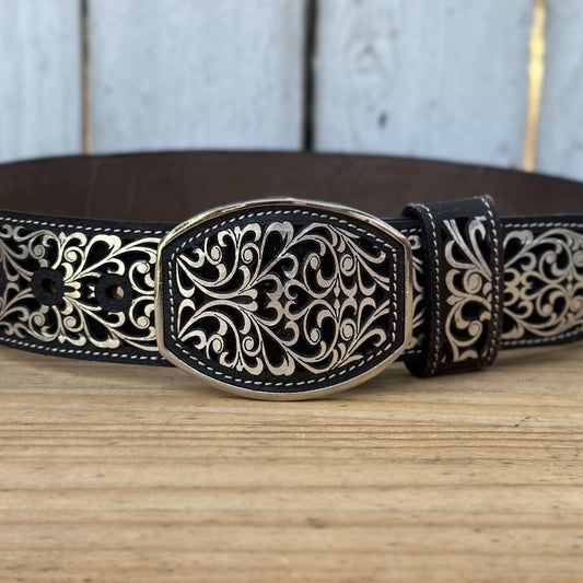 Silver "Chalino" Laser Cut Belt - Western Belts for Men
