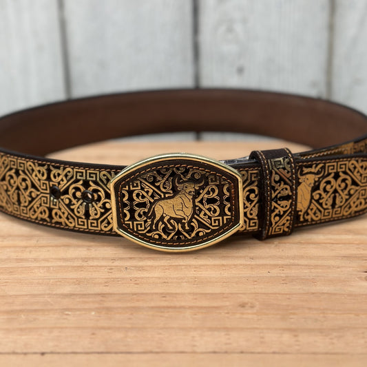 Laser-Cut Belt with Golden Bull - Western Belts for Men