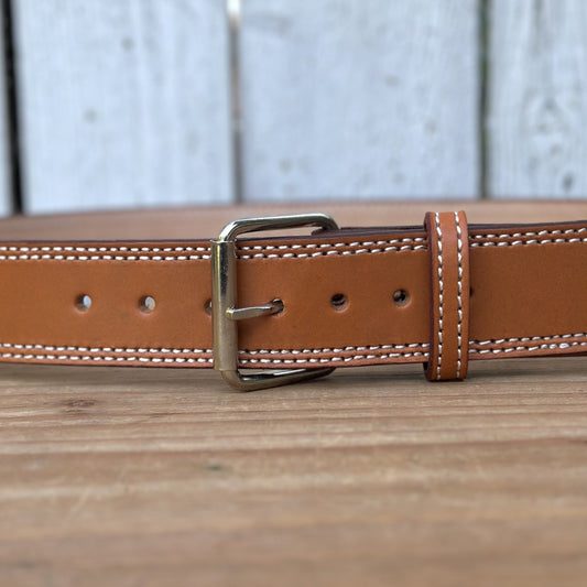 Honey-Toned Heavy-Duty Leather Work Belt with Single-Prong Roller Buckle