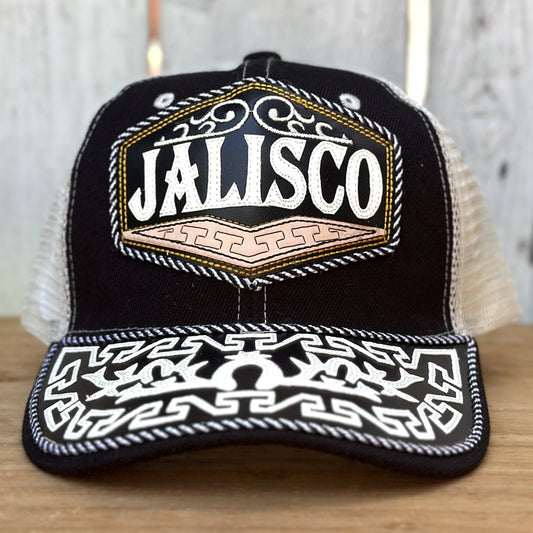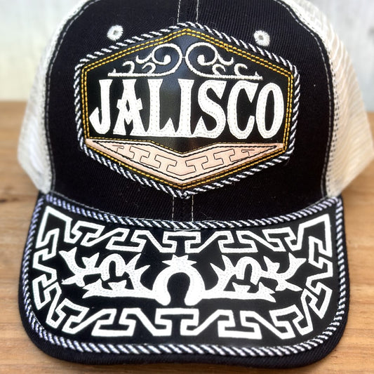 Black Jalisco Cap with Greek Design - Handcrafted Mexican Caps