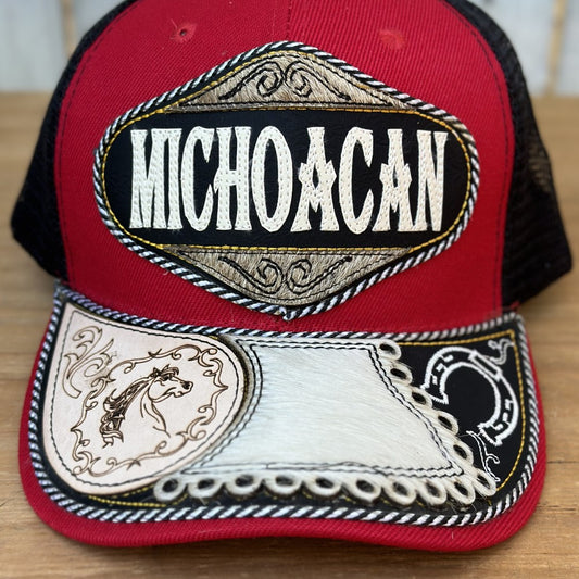 Red Michoacan Cap with Cowhide #300 - Handcrafted Mexican Caps