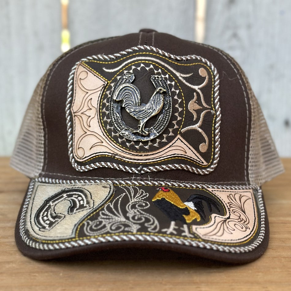 Brown Western Cap with Rooster and Horseshoe - Mexican Handcrafted Caps