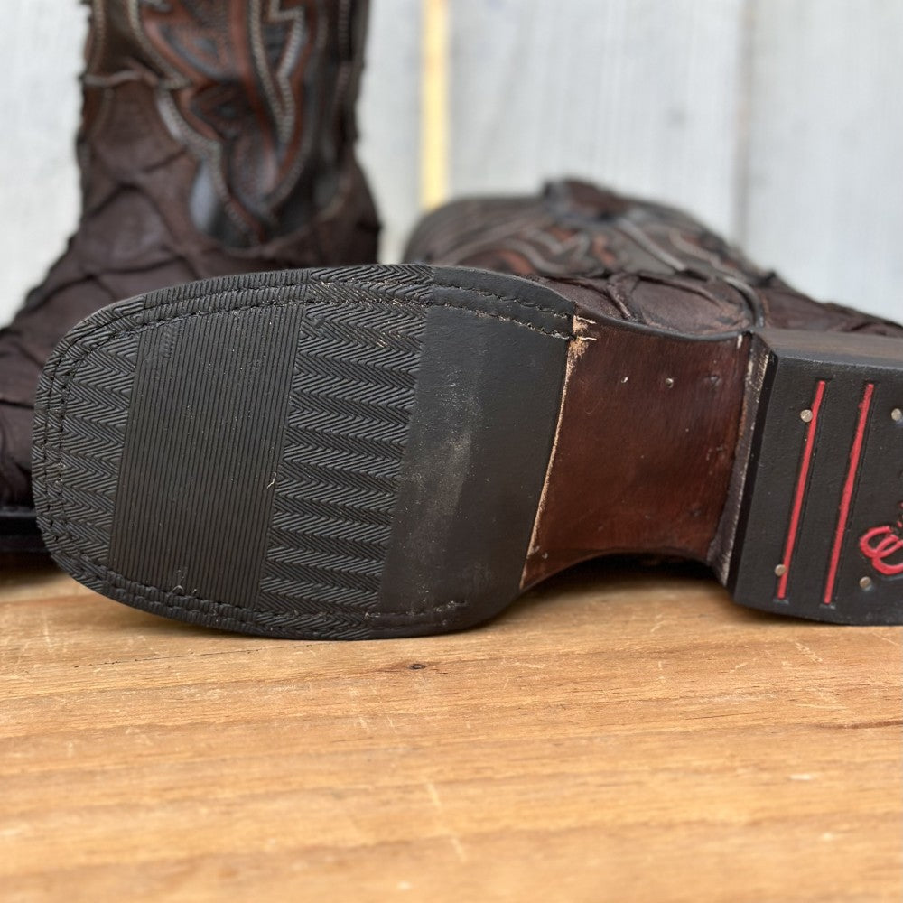 DA-Jefe Faux Pirarucu Brown - Exotic Western Boots for Men
