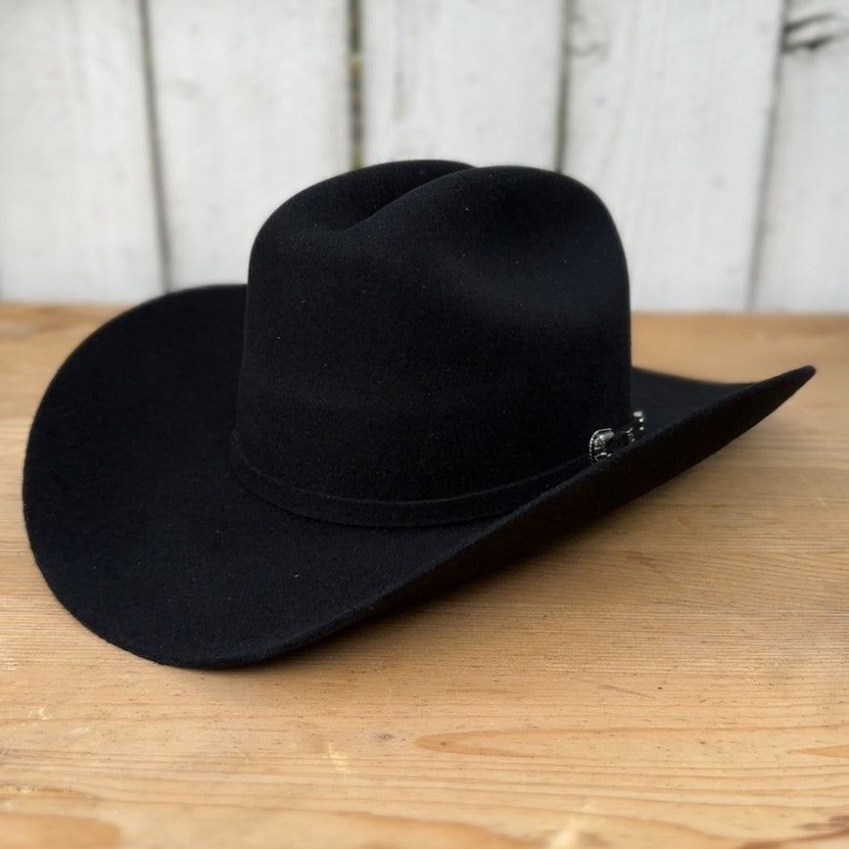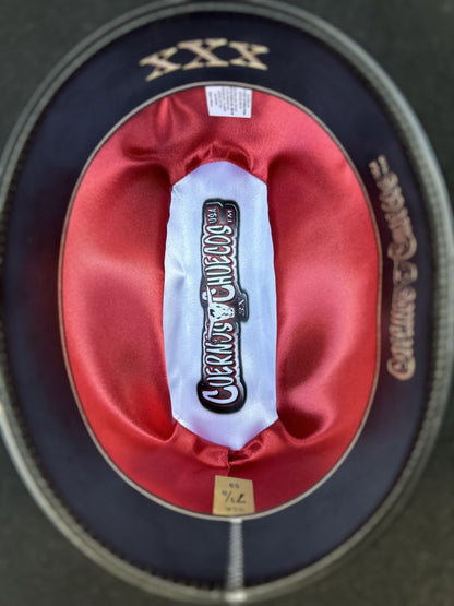 The Cuernos Chuecos 3X Chaparral hat, presented in an elegant black color, is a classic of cowboy fashion. Made from quality felt, this hat combines durability with traditional style. With a 3 1/2" brim and 4 1/2" crown, it offers a perfect balance between functionality and aesthetics. Made in Mexico, the 3X Chaparral is ideal for those looking for an authentic and trustworthy cowboy hat