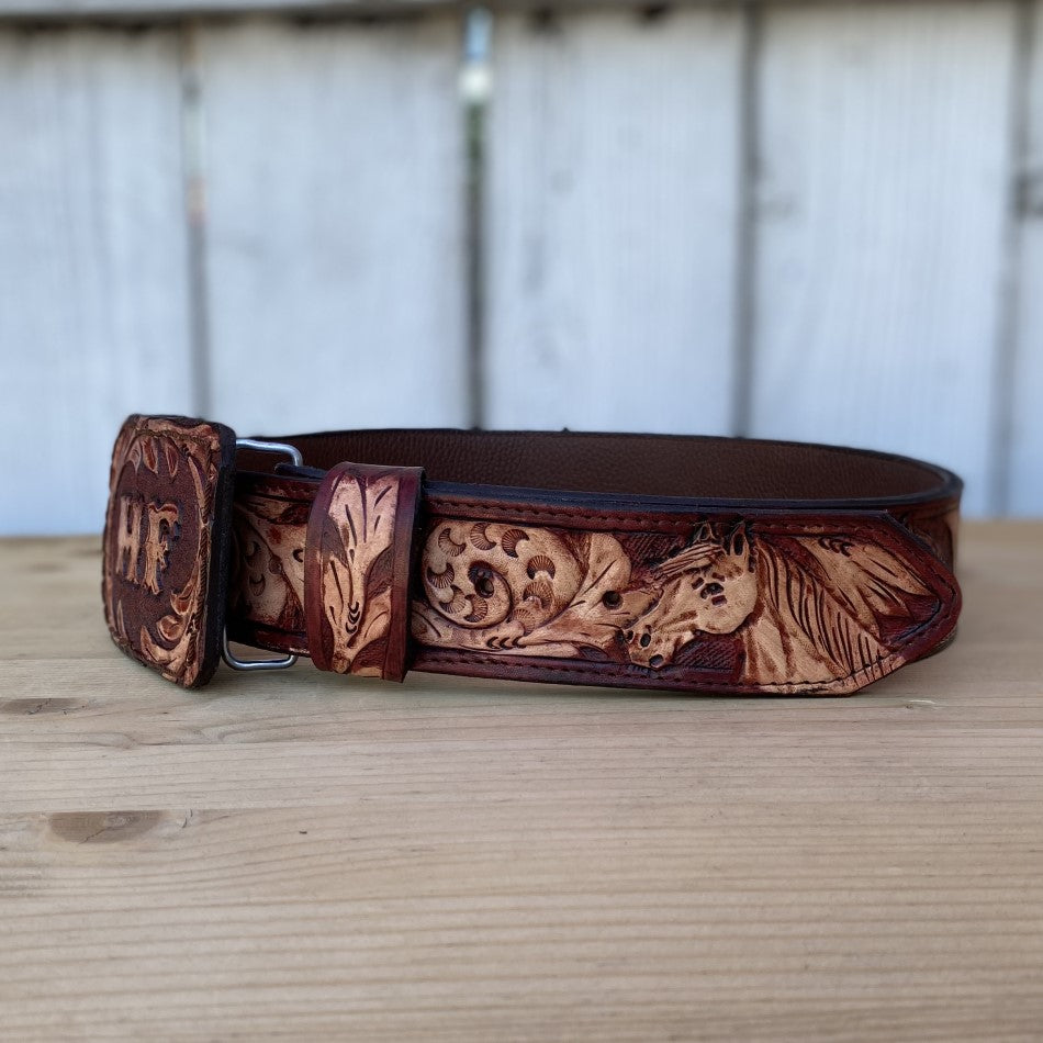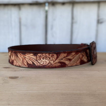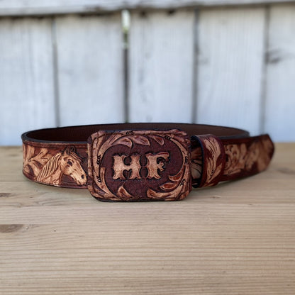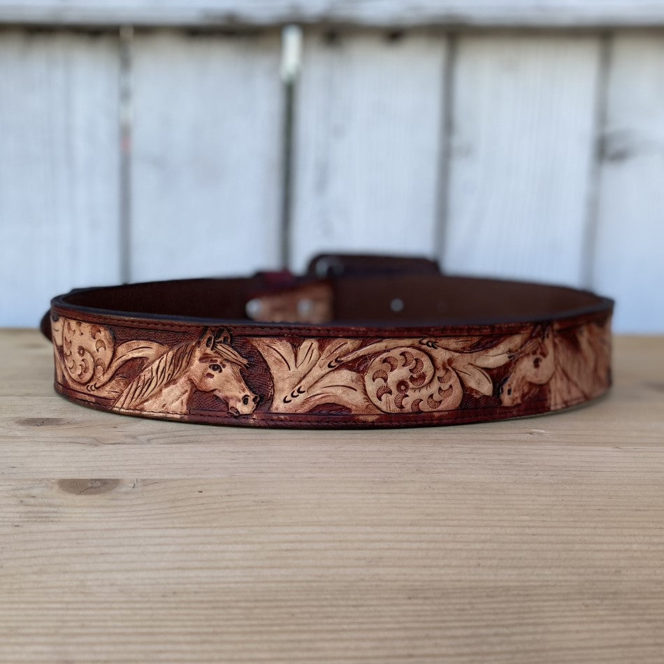 Customizable Chiseled Belt with Horses - Western Belts