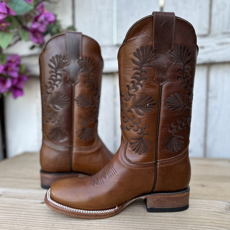 The Misterio cowgirl boot, in an elegant mahogany hue, is a beauty that captures the essence of denim fashion with a touch of sophistication. It stands out for its dark and subtle floral embroidery on the shaft, which adds a refined aesthetic detail without being overwhelming. The Bulldog last with square toe guarantees comfort and a perfect fit, ideal for any casual occasion. Made of Pull-Up leather, with a leather upper and lining, this boot combines durability and timeless style. With an 11-inch shaft height and 1 3/8-inch heel, the Misterio is a versatile and attractive shoe. Made in León, Mexico, this boot is a clear example of quality and exceptional design in western footwear.