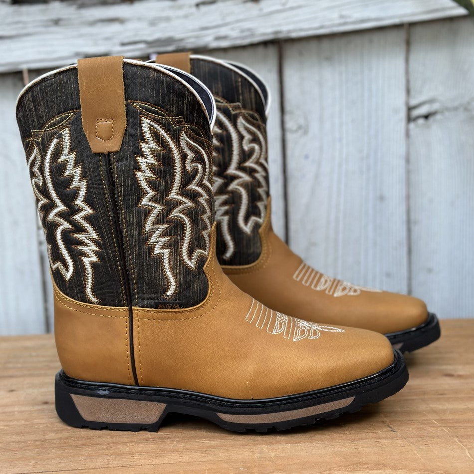 This is the 510 style in mango. These western boots are made from leather with cowhide lining and upper, combining an authentic cowboy design with the comfort of a rubber sole and Bulldog last. With eye-catching embroidery on the shaft, they are ideal for those looking for a versatile boot that can be worn both everyday and for a Sunday outing. Designed and manufactured in Leon, Mexico, these western boots are an excellent choice to complement any outfit with style.