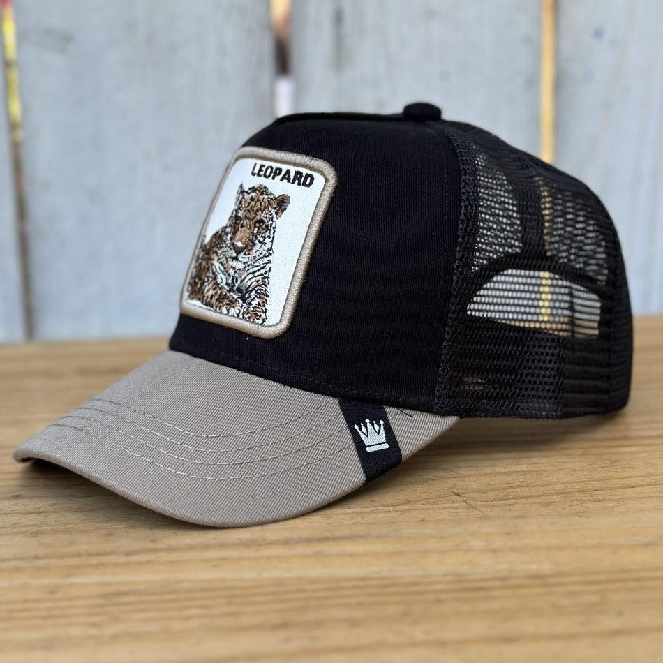 Beige Cap with Leopard - Trucker Cap with Embroidered Patch