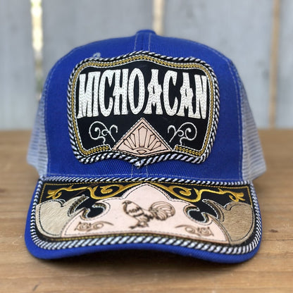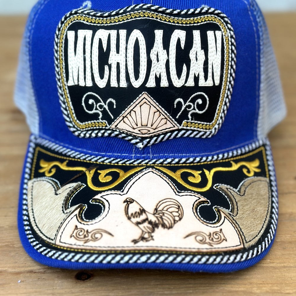 Blue cap with a rooster embroidered on the visor and with cowhide. If you are from Michoacán, this cap is for you.