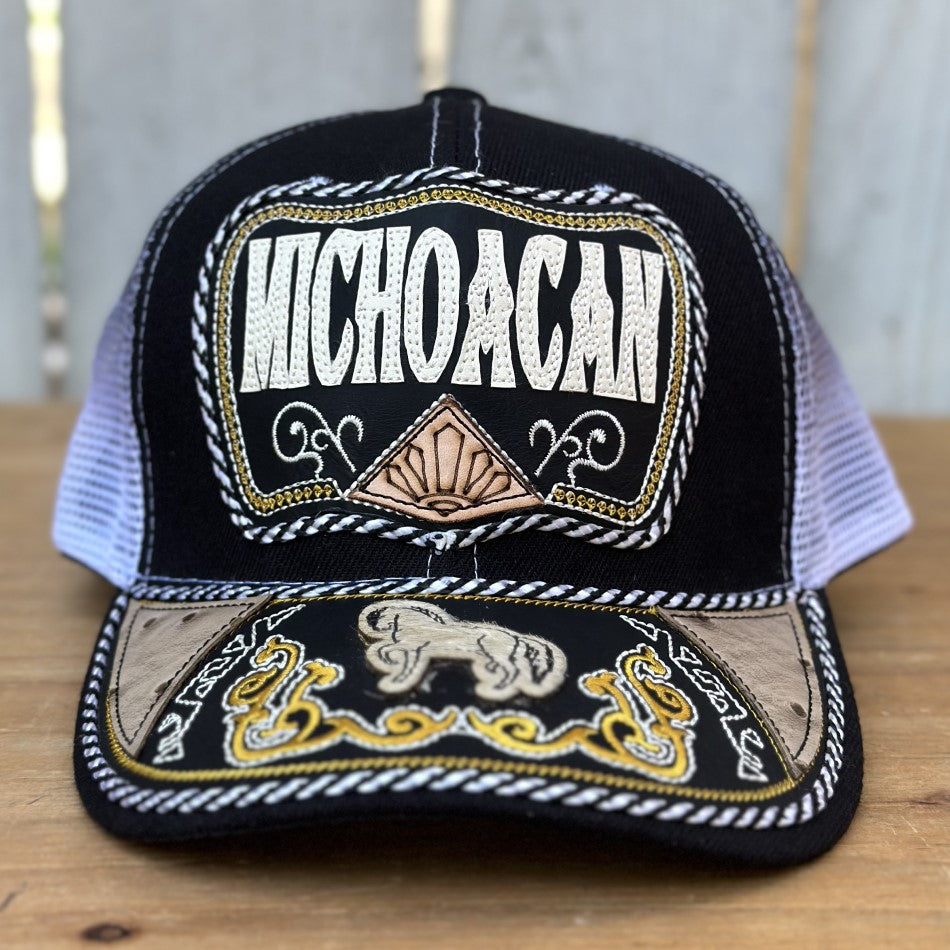 Black cap from Michoacán with a horse embroidered on the visor. If you are from Michoacán, this cap is for you.