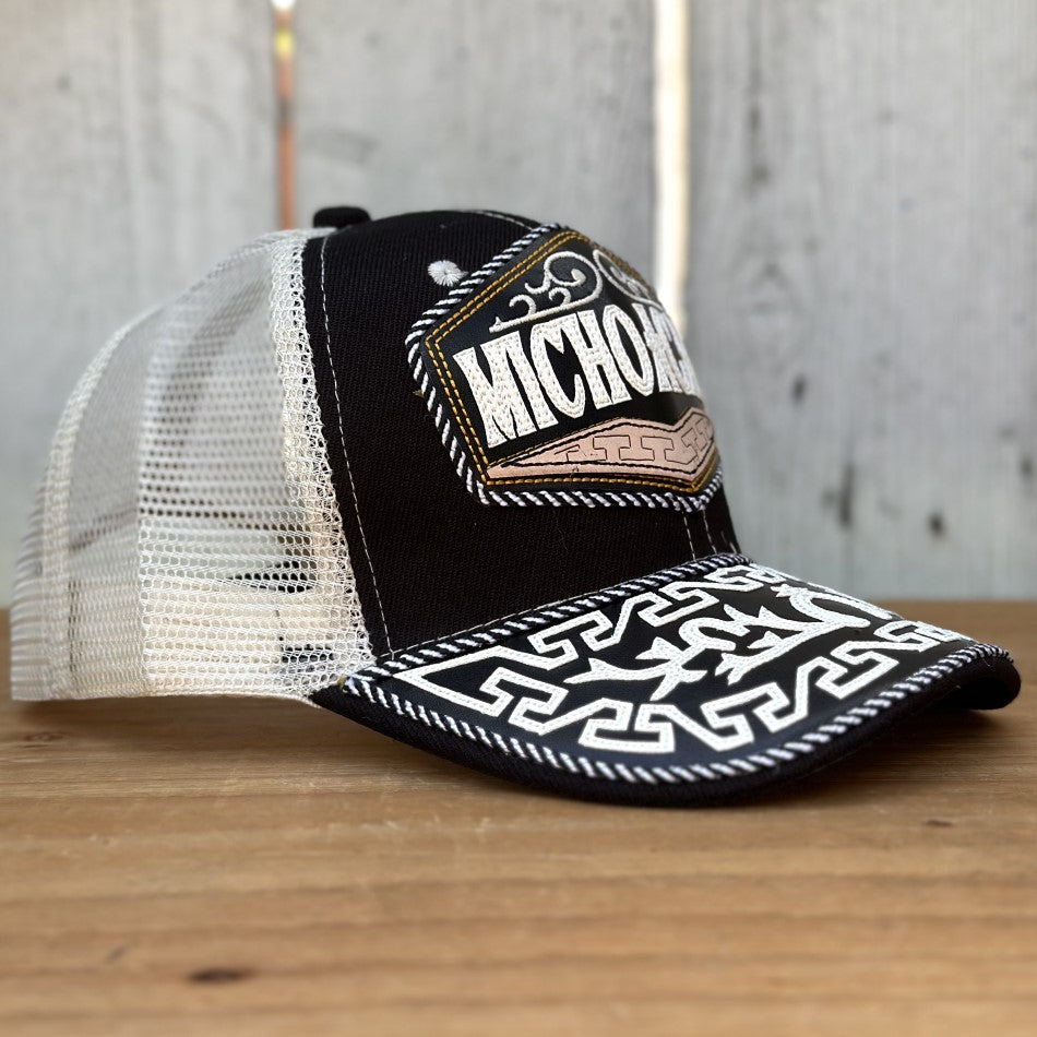 Black cap from Michoacán with a Greek key design on the visor. If you are from Michoacán, this cap is for you.