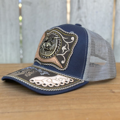 Blue Western Cap with Rider and Horseshoe - Mexican Handcrafted Caps