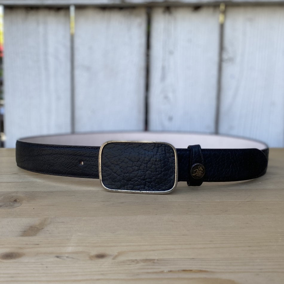 This is the JB-140 style belt, a real cool one for those who want to wear a western style every day. Made of quality black leather, its sturdy metal buckle adds a rustic and durable touch. Ideal for everyday wear, this belt is not only practical, but also adds a distinctive touch to any outfit, perfect for those who want to live with a western touch anywhere. Made in Mexico, it represents quality and tradition in every detail.