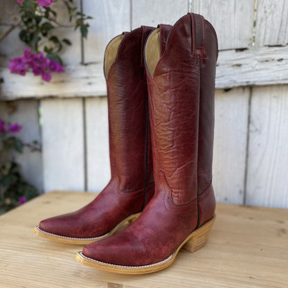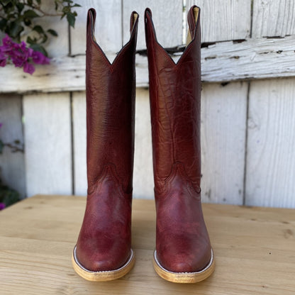 This is the RH-Jolene western boot for women, in a red color that captures the eye. Its Snip Toe adds sophisticated style, while the 2-inch stacked leather heel offers a modern touch. Made with leather upper and lining, it provides comfort and durability. The cowhide sole and Goodyear Welt single-stitch construction guarantee quality. With a 13-inch shaft and 13-inch circumference, made in León, Mexico, the RH-Jolene is an icon of style and craftsmanship.