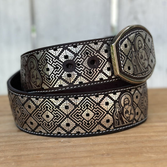 Cinturon Cortado a Láser "San Judas" 2 Plateado - Cinturones Vaqueros para Hombre