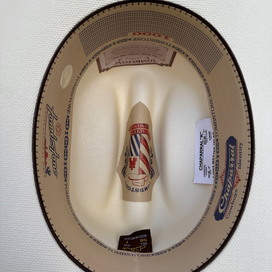 El sombrero vaquero 1000X Chaparral de Tombstone Hats es la definición de versatilidad y estilo. Fabricado con Telar Master 1x1, este sombrero de alta calidad es perfecto para cualquier ocasión, combinando elegancia con practicidad. Sus tres diamantes de ventilación aseguran comodidad, mientras que la pluma decorativa añade un toque de sofisticación. Con una falda de 4" y una copa de 4 1/2", hecho en México, este sombrero es un imprescindible para el amante del estilo vaquero.
