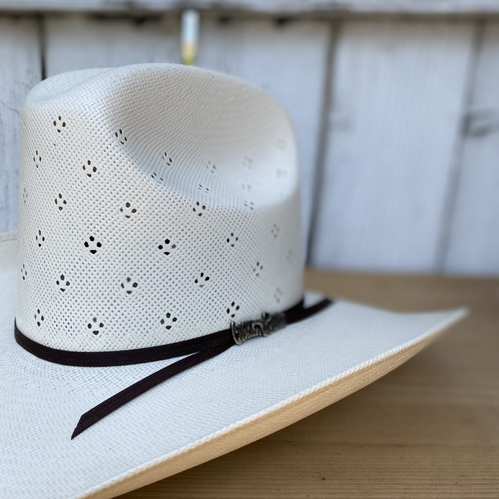 El 100X Sonora Flower de Cuernos Chuecos es un sombrero vaquero robusto con un diseño práctico. La copa está dotada de un patrón de ventilación que, aunque recuerda sutiles formas de flores, aporta un toque de carácter a su diseño sólido. La falda de 4 1/4" y la copa de 5" conforman una silueta imponente. Este sombrero, hecho en México, combina la artesanía tradicional con características pensadas para el confort y la durabilidad.