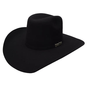 Esta es la texana estilo 6X Renegado en color negro. Hecha en México con material tipo fieltro, cuenta con una copa de 4 1/4" con hendidura al centro y doble pliegue al frente. La falda también mide 4 1/4", con caída firme y curva amplia en los costados. Incluye una toquilla del mismo color y broche metálico de la marca Cuernos Chuecos. Es parte de nuestra colección de texanas vaqueras disponibles en Bota Exótica.