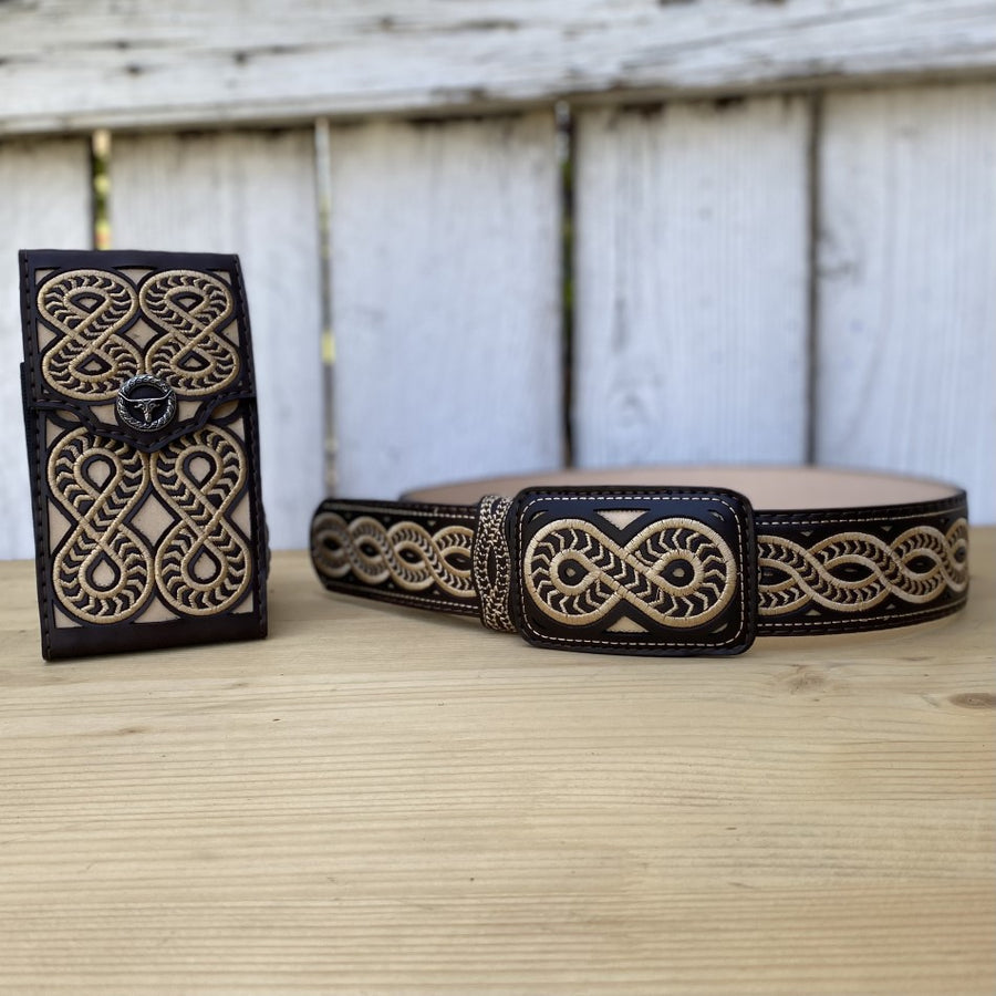 CB Caporal-011 Cafe - Cinturon y Funda para Telefono Combo