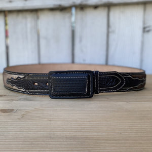 Cinturon con Pelo de Res Negro - Cinturones Vaqueros para Hombre
