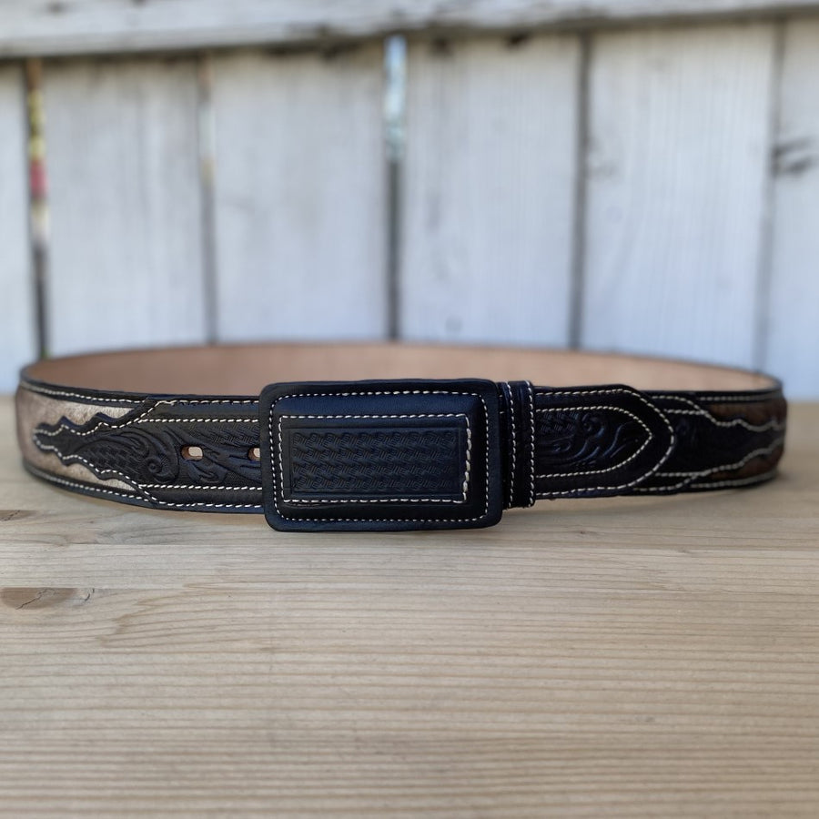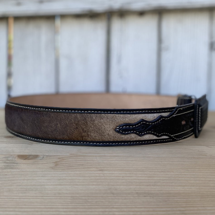 Este es el Cinturón con Pelo de Res, una obra maestra de la moda vaquera. De 2" de ancho y color negro profundo, este cinturón combina 100% piel genuina con pelo de res real, aportando textura y un toque distintivo. Cada cinturón es meticulosamente hecho a mano en México, garantizando no solo calidad sino también un estilo único. Es el complemento ideal para quien busca autenticidad y resistencia en un mismo accesorio.