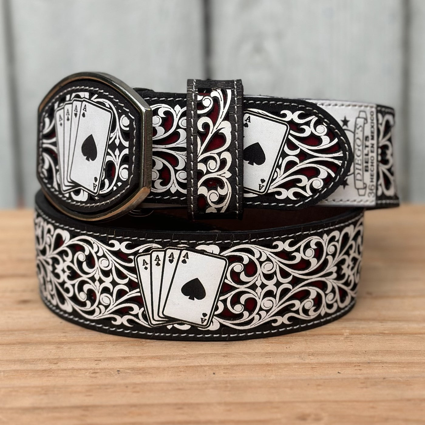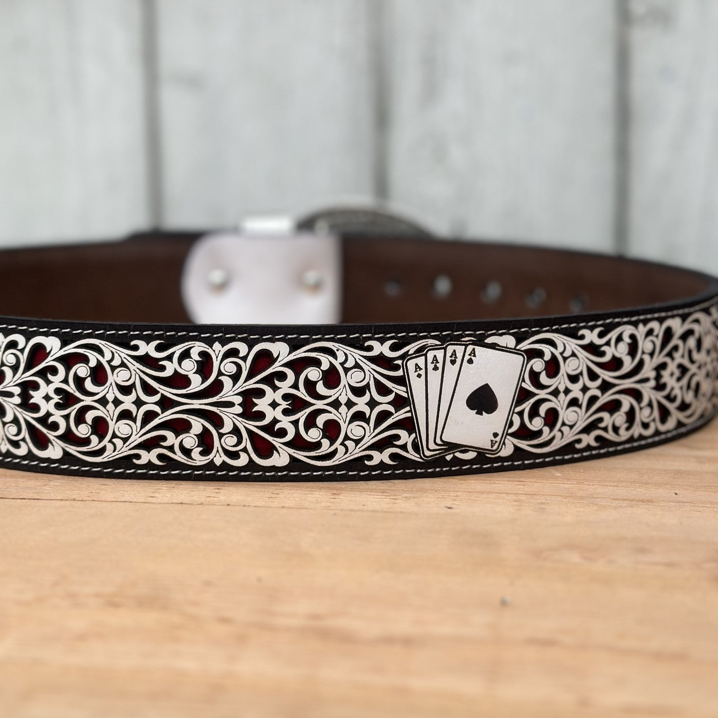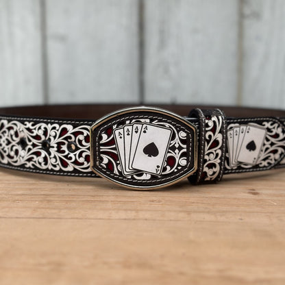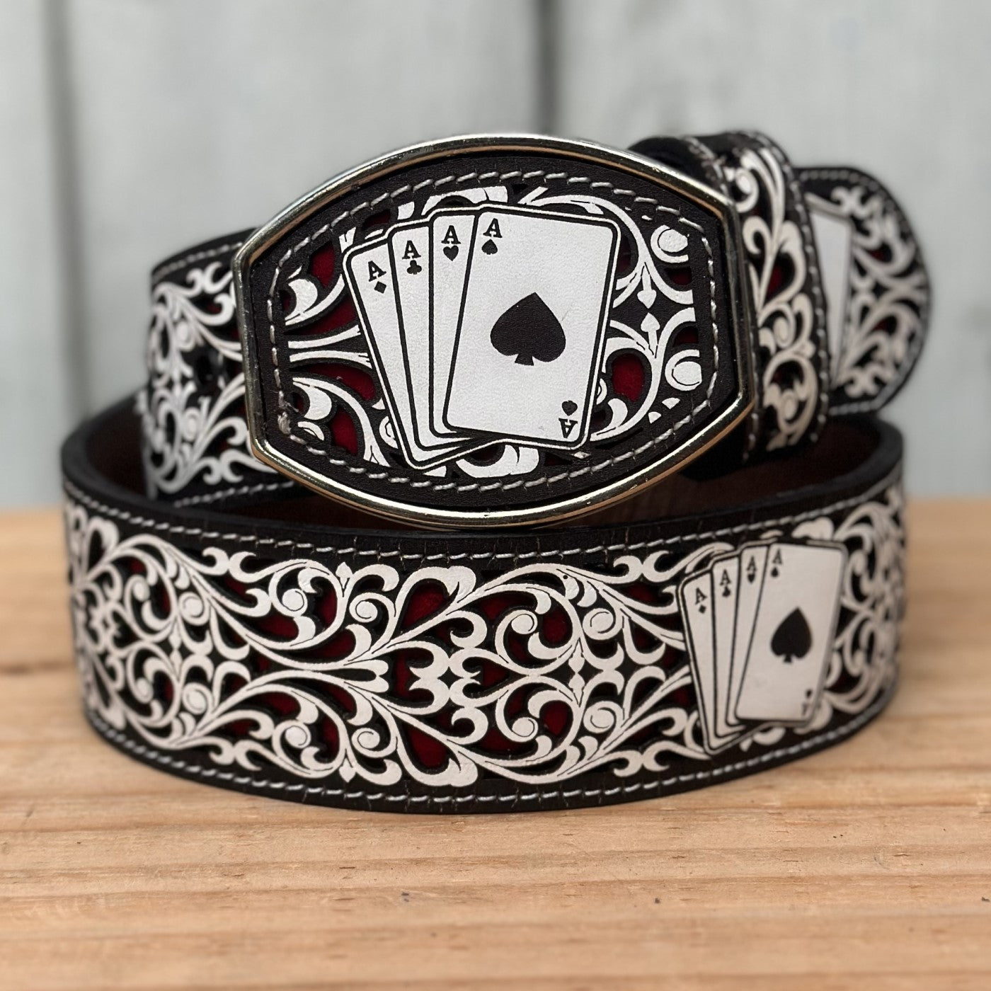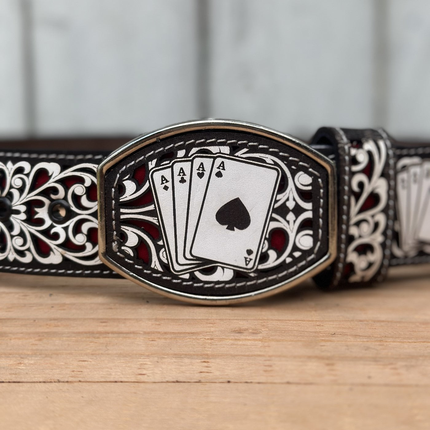 Cinturon Cortado a Láser "4 Aces" - Cinturones Vaqueros para Hombre