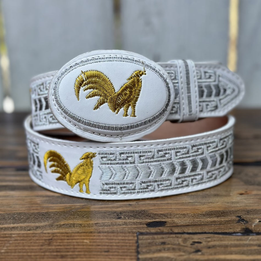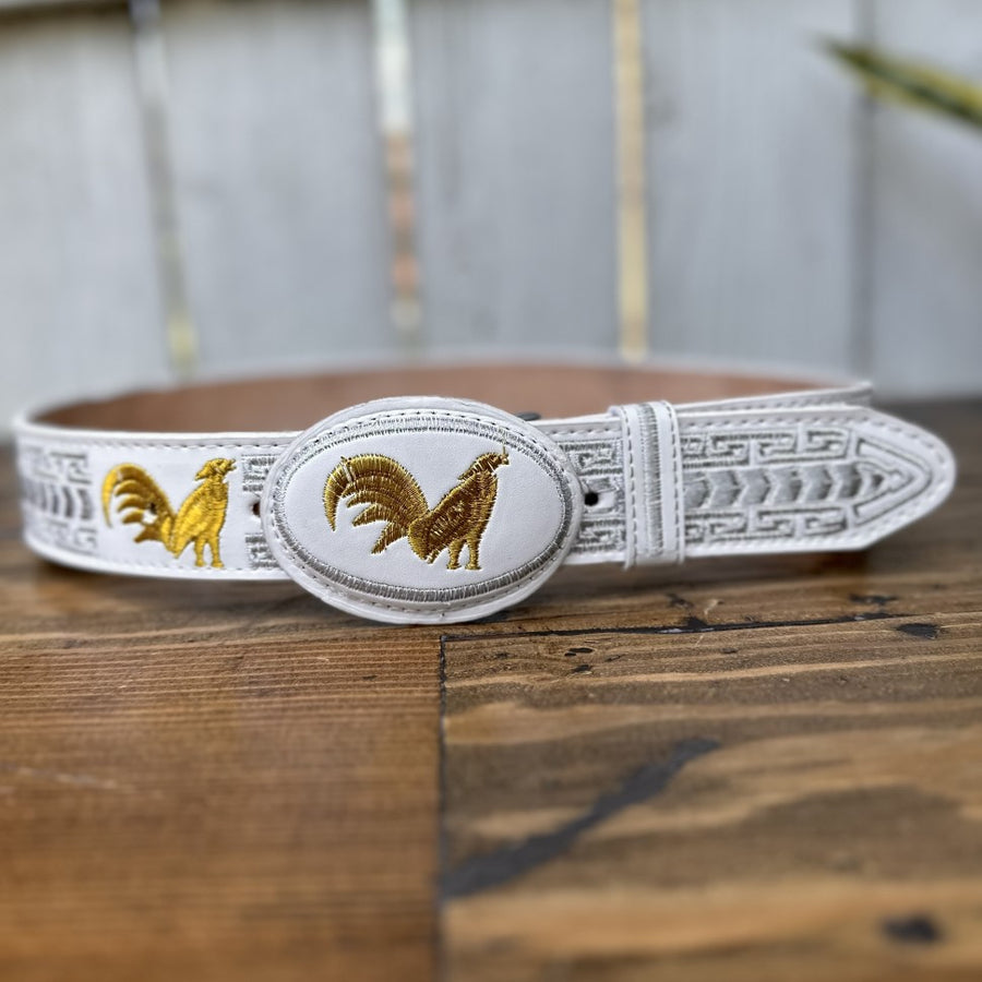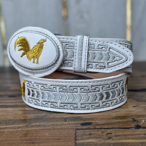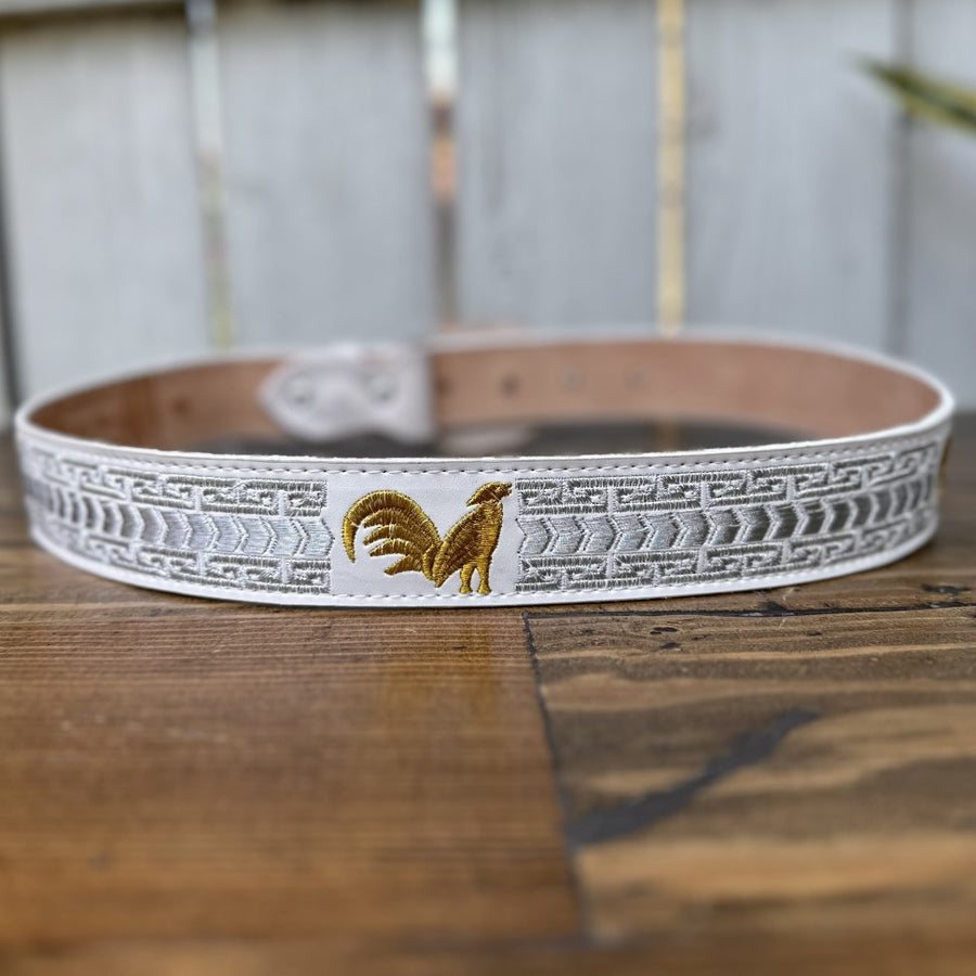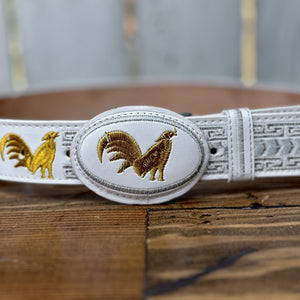 Cinturon Vaquero Blanco Gallo de 1 1/2" - Cinturones Vaqueros para Hombre