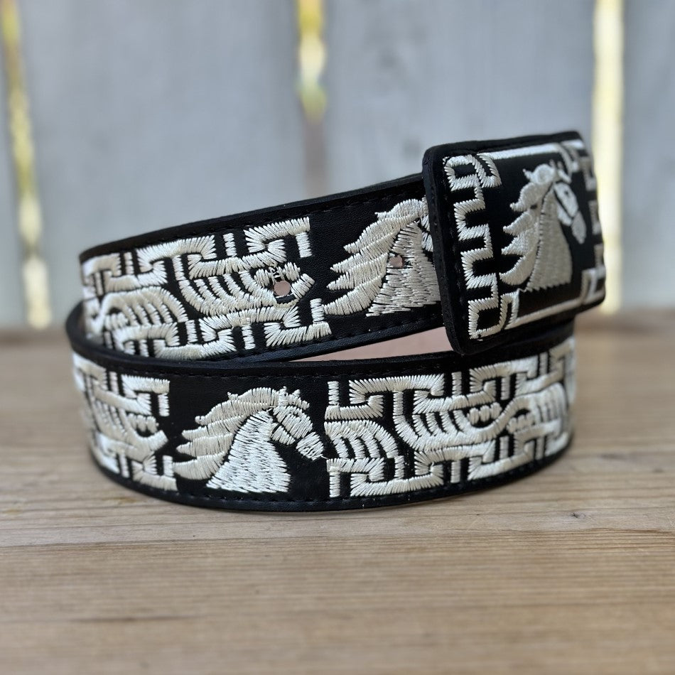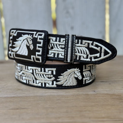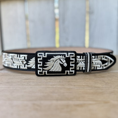 Cinturón Vaquero "Caballo" Negro y Blanco - Cinturones Vaqueros para Hombre