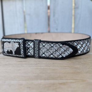 Este es el cinturón 13197 Negro Cebu, parte de nuestra colección de cinturones bordados con hilo metálico. El diseño incluye detalles de cebú y patrones de bordado en hilo metálico, dándole un aspecto distintivo y resistente. El cinturón mide 2 pulgadas de ancho y está hecho de piel genuina, mostrando la calidad del cuero mexicano. Ideal para complementar un look vaquero con un toque especial, es un cinturón hecho en México para aquellos que aprecian el estilo auténtico y la artesanía detallada.