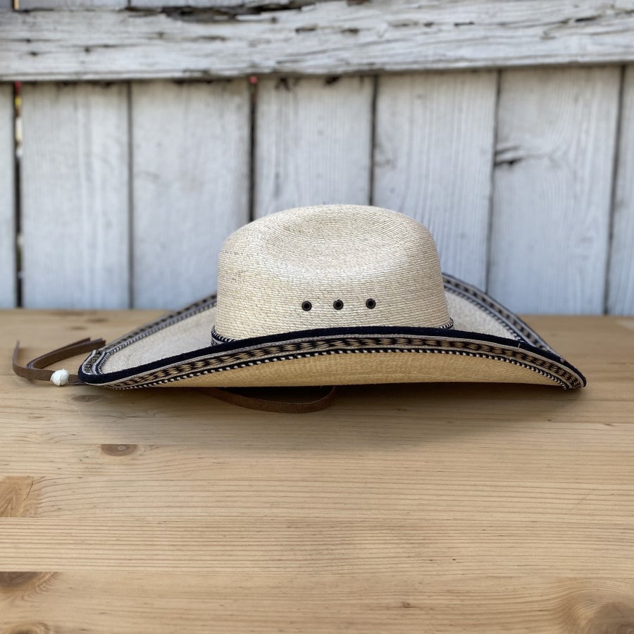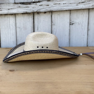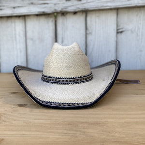 El sombrero sahuayo Oscar Doble Ribete de Stone Hats destaca por su diseño artesanal y prácticos orificios de ventilación. Con un doble ribete que adorna la ala y la toquilla, este sombrero sahuayo es un emblema de la tradición mexicana. Perfecto para los entusiastas del estilo vaquero, es cómodo y hecho en México.