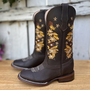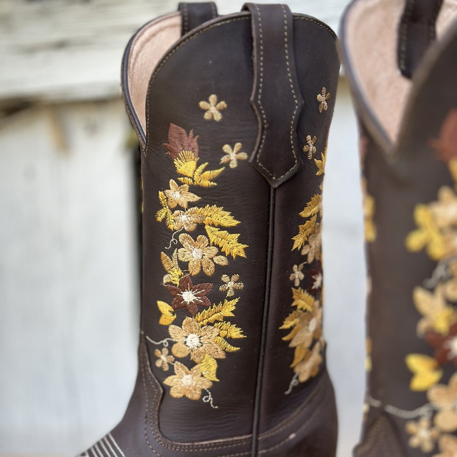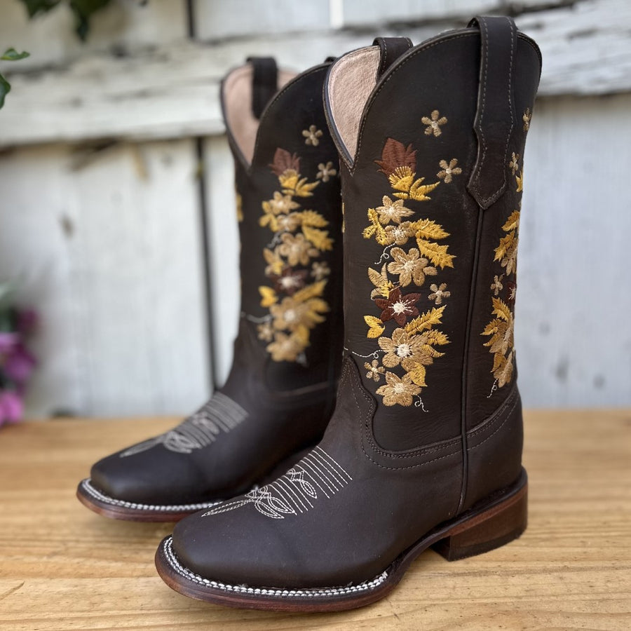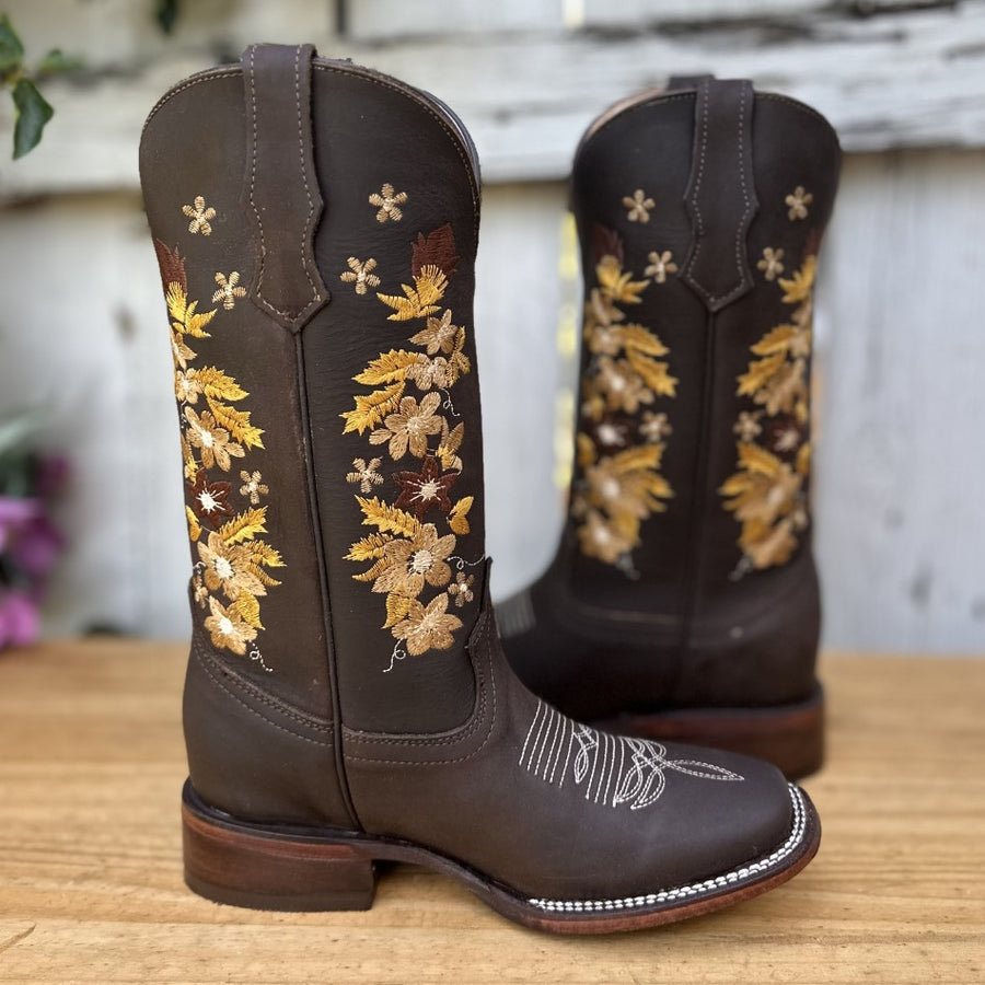 DA-041 Cafe - Botas Vaqueras con Bordado para Mujer