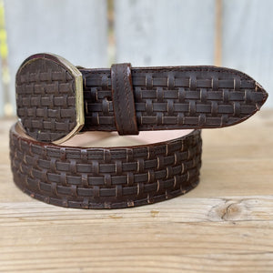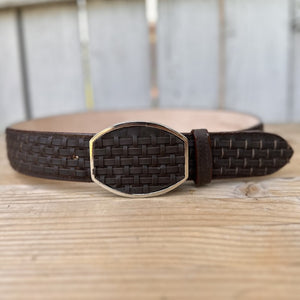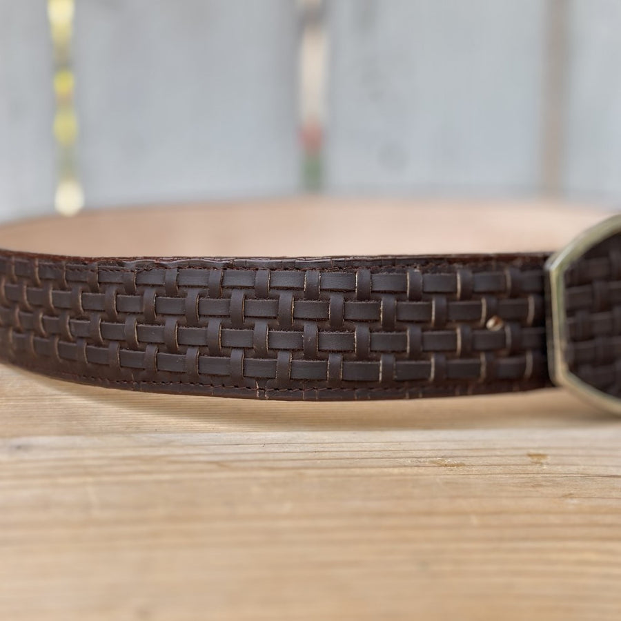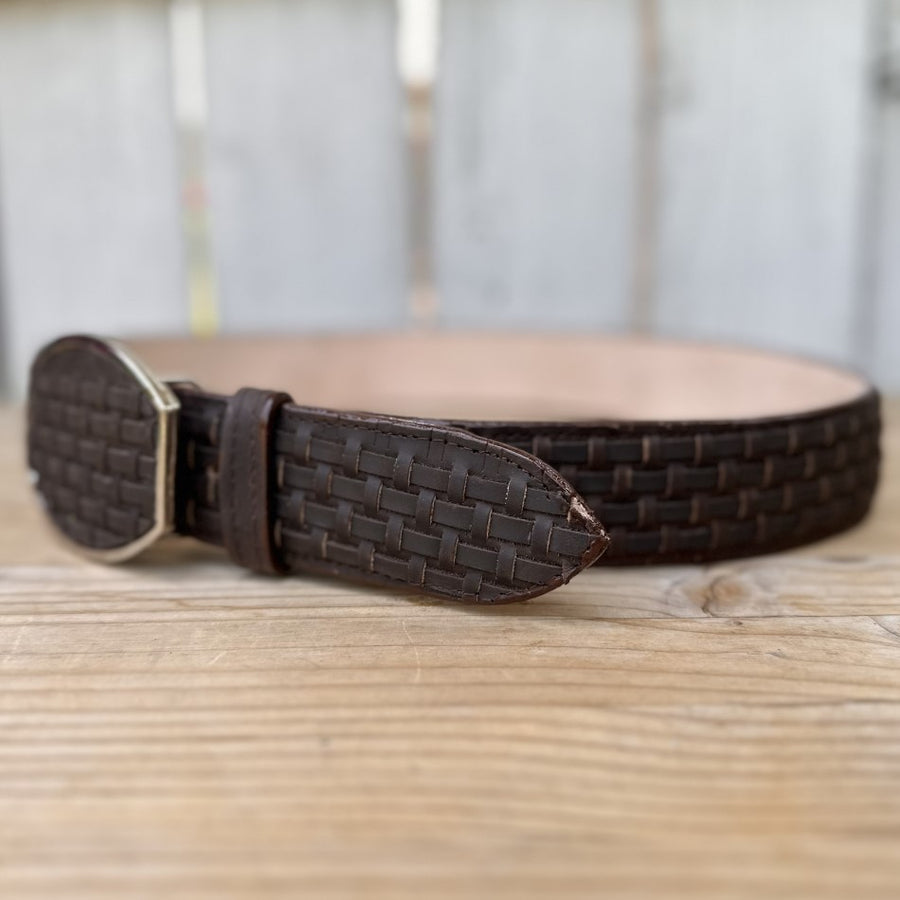Descubre la autenticidad del estilo western con nuestro cinturón petatillo, un tejido hecho de cuero trenzado. Elaborado en México con orgullo artesanal, este cinturón está hecho completamente de piel en un cálido tono café. Con 1 3/4" de ancho y cinco filas de agujeros para un ajuste perfecto, resalta tu estilo con este símbolo de tradición y calidad mexicana.