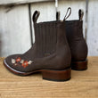 Este es el botín vaquero África en color moka, embellecido con un exclusivo bordado de flores rojas que captura la esencia de la feminidad. La piel crazy aporta textura y resistencia, mientras que la suela de media vida y el forro de piel ofrecen confort prolongado. Elaborado con orgullo en León, México, este botín es un tributo a la artesanía y el diseño contemporáneo.