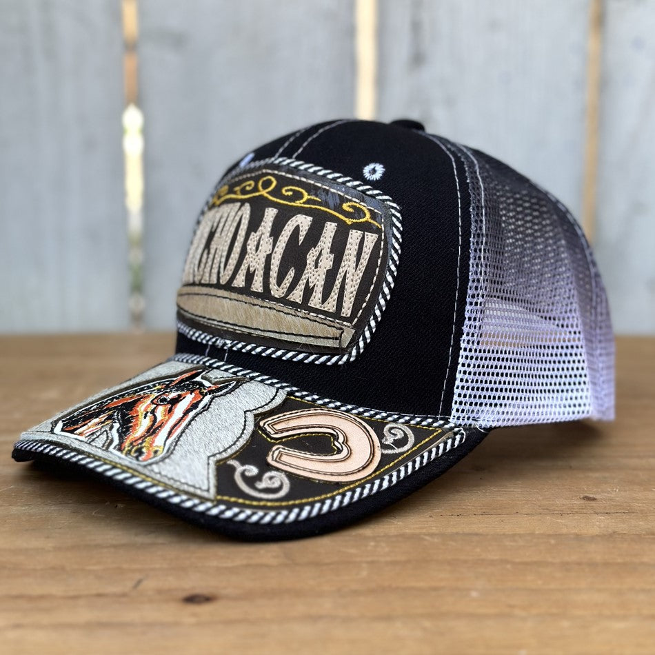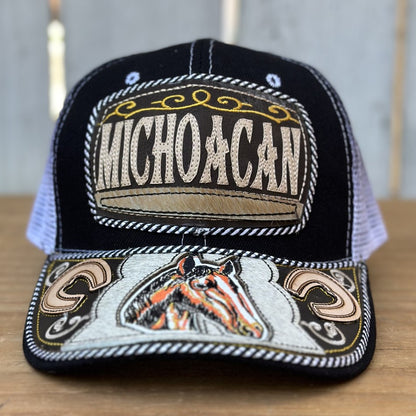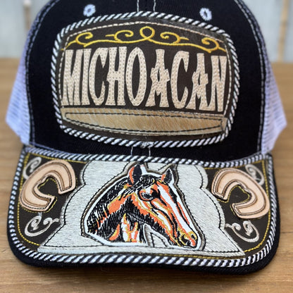 Gorra negra de Michoacán con caballo bordado en la visera. Si eres de Michoacán, esta gorra es para ti.