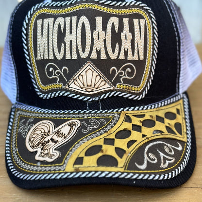 Gorra negra de Michoacán con gallo bordado en la visera. Si eres de Michoacán, esta gorra es para ti.