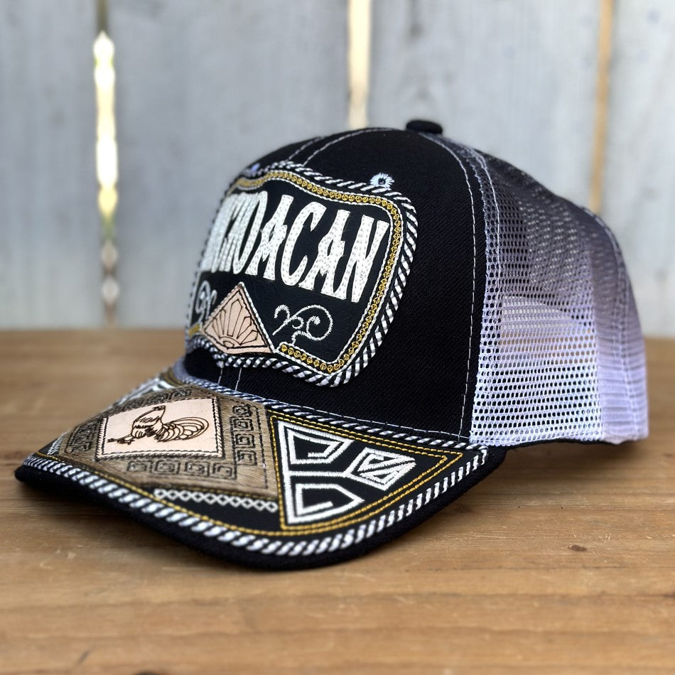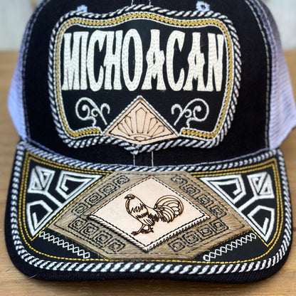 Gorra negra de Michoacán con gallo bordado en la visera. Si eres de Michoacán, esta gorra es para ti.