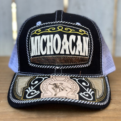 Gorra negra de Michoacán con jinete bordado en la visera. Si eres de Michoacán, esta gorra es para ti.