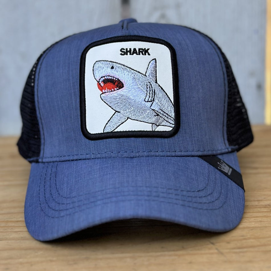 Gorra Mezclilla con Tiburon - Gorra Trucker con Parche Bordado