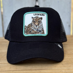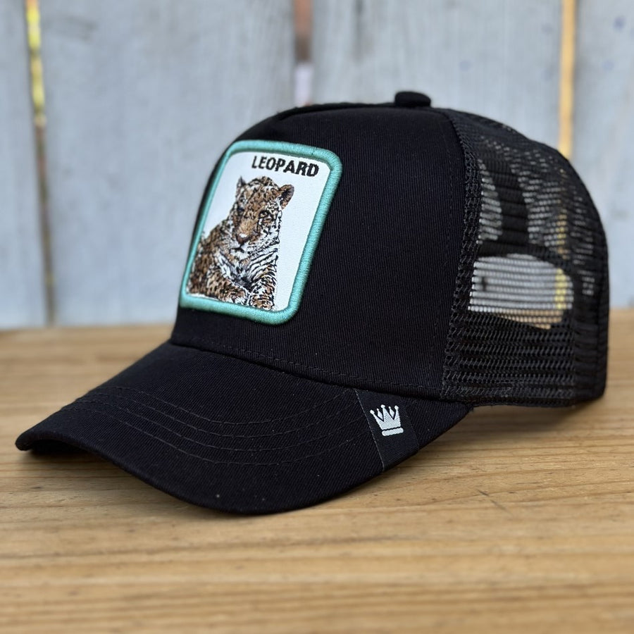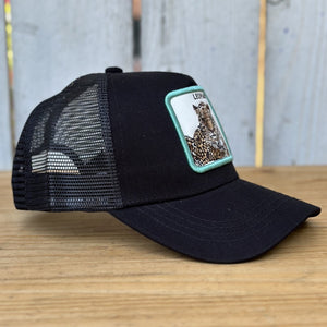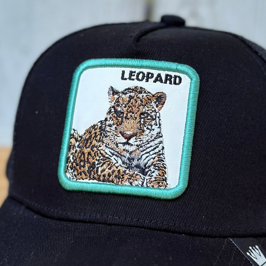 Gorra Negra con Leopardo - Gorra Trucker con Parche Bordado