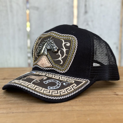 Gorra Vaquera Negra con Caballo - Gorras Artesanales Mexicanas