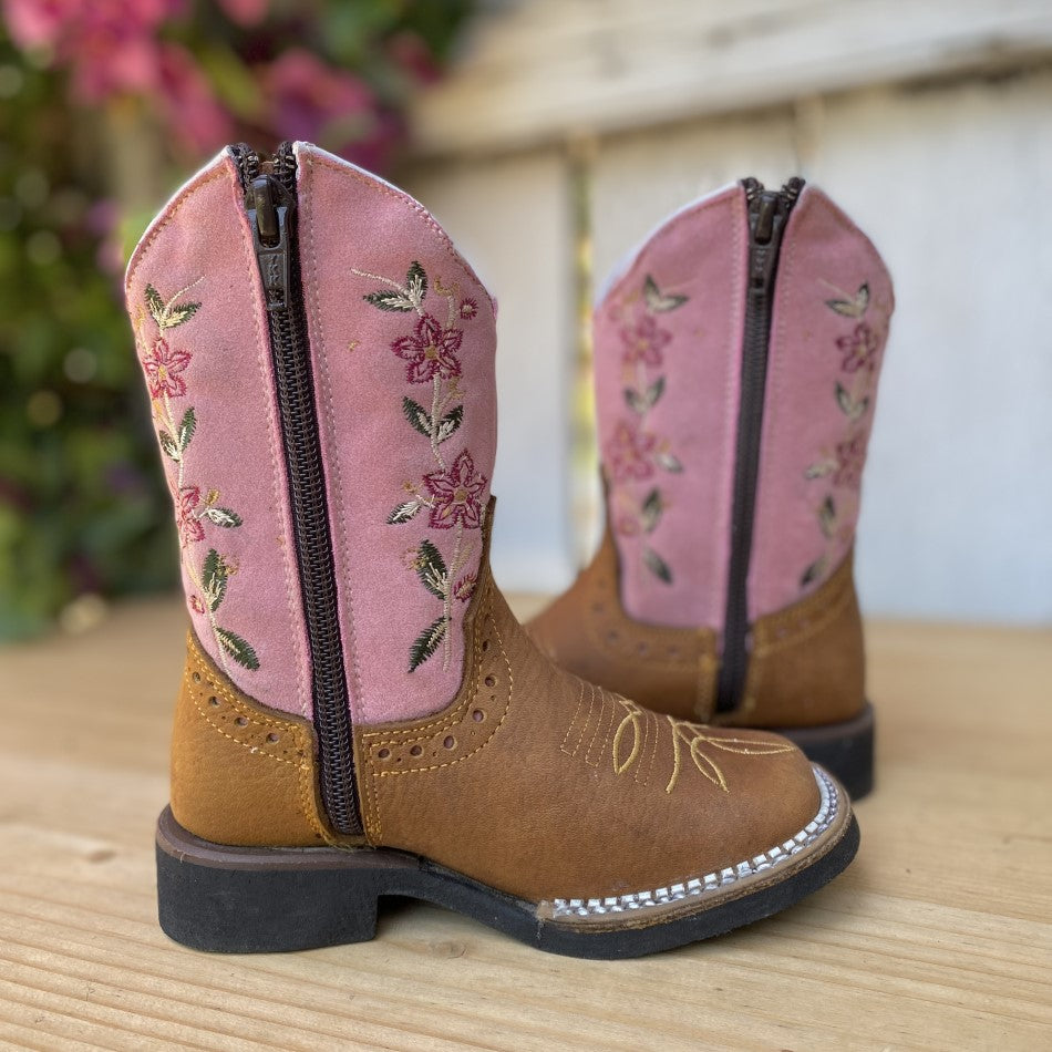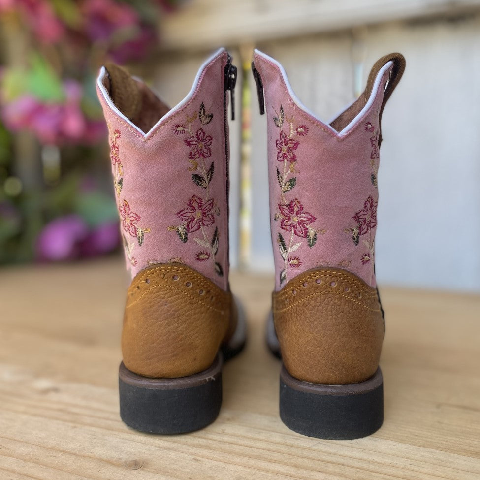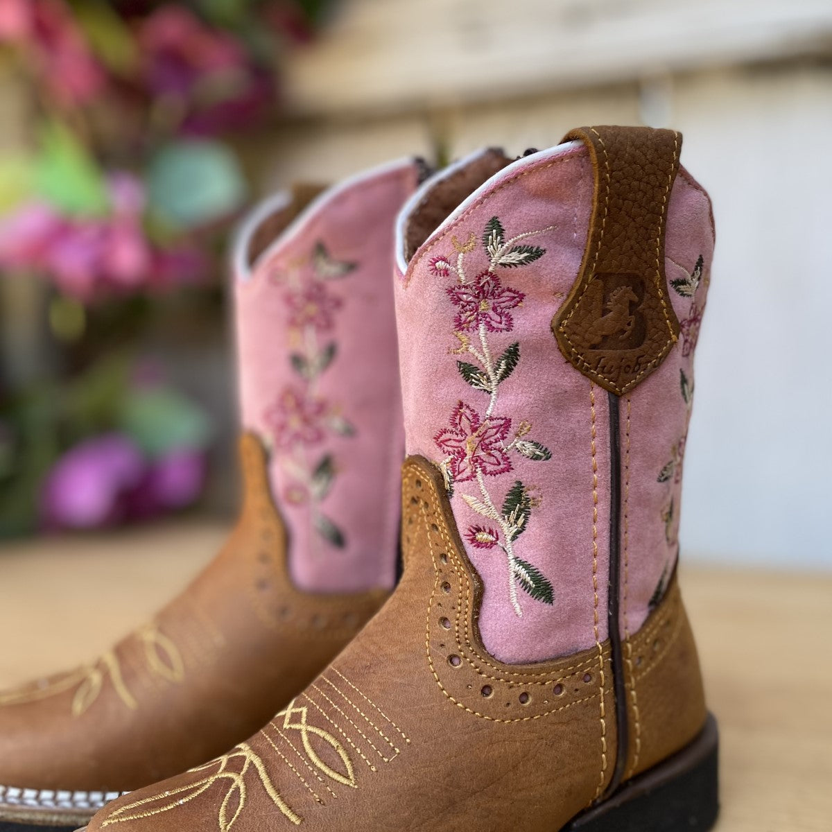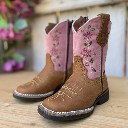 Selene-3 Tan con Rosa con Gamuza Sintetica - Botas Vaqueras para Niñas