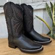 La bota vaquera SG-518 para hombre, presentada en un profundo negro, es un calzado de calidad premium que combina resistencia y estilo rústico. Su suela de goma, diseñada para durar, es ideal para enfrentar cualquier desafío, ya sea en el trabajo o en el campo. El tubo, elaborado en piel de la más alta calidad, resalta la robustez y el carácter genuino de la bota. Con una punta cuadrada que aporta un perfil clásico, esta bota es una elección excepcional para los hombres que aprecian la fortaleza y el diseño tradicional en sus botas. Hecha en León, México, la SG-518 es una verdadera joya del calzado vaquero, perfecta para quien busca una bota fiable y con mucha personalidad.