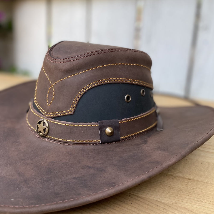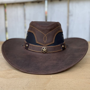 Sombrero de Cuero Cafe con Estrella - Sombreros de Cuero