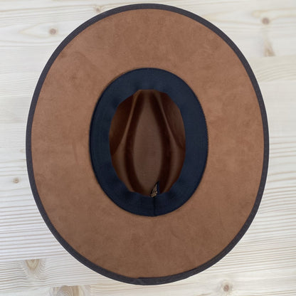 Sombrero de Fieltro Color Camel con Bordado Rosa para Mujer