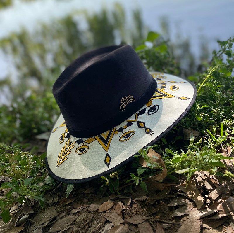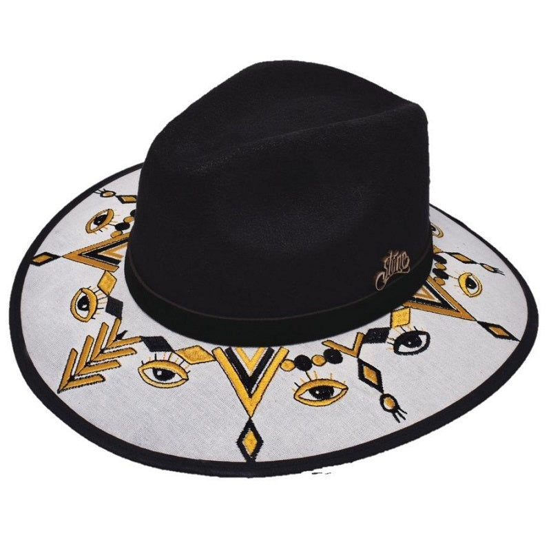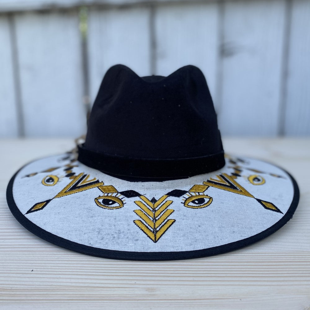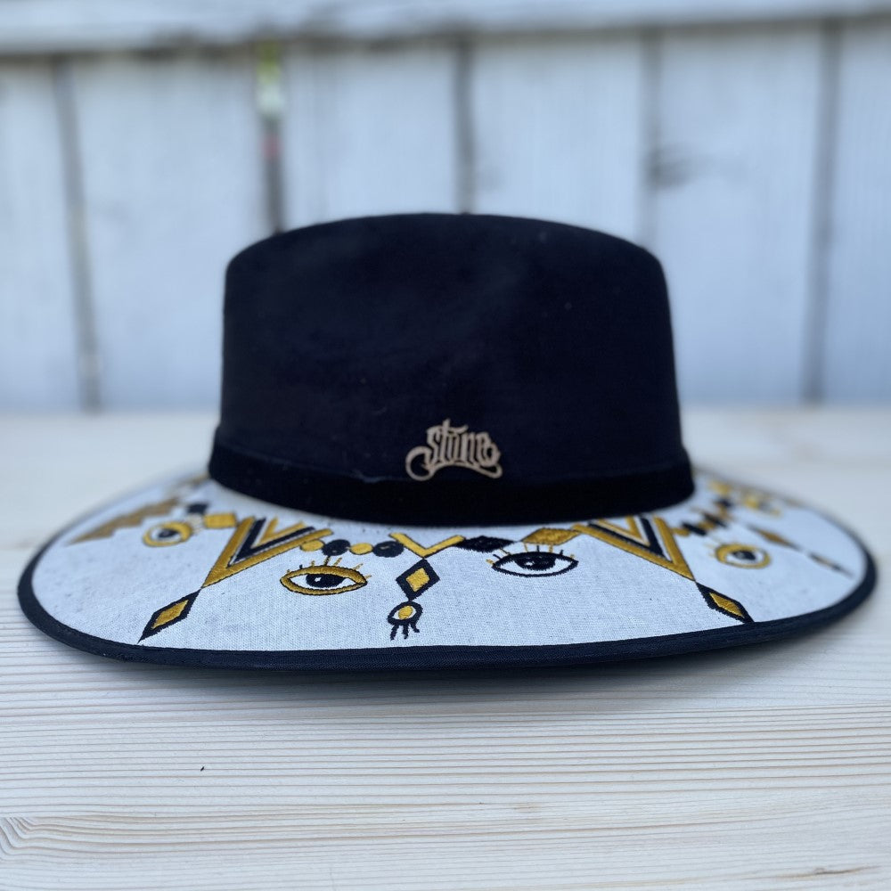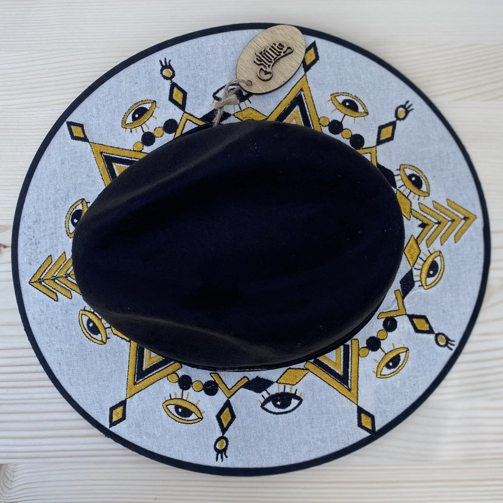 Sombrero de Fieltro Negro con Ojos Bordados para Mujer
