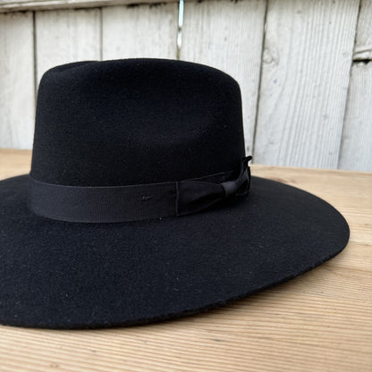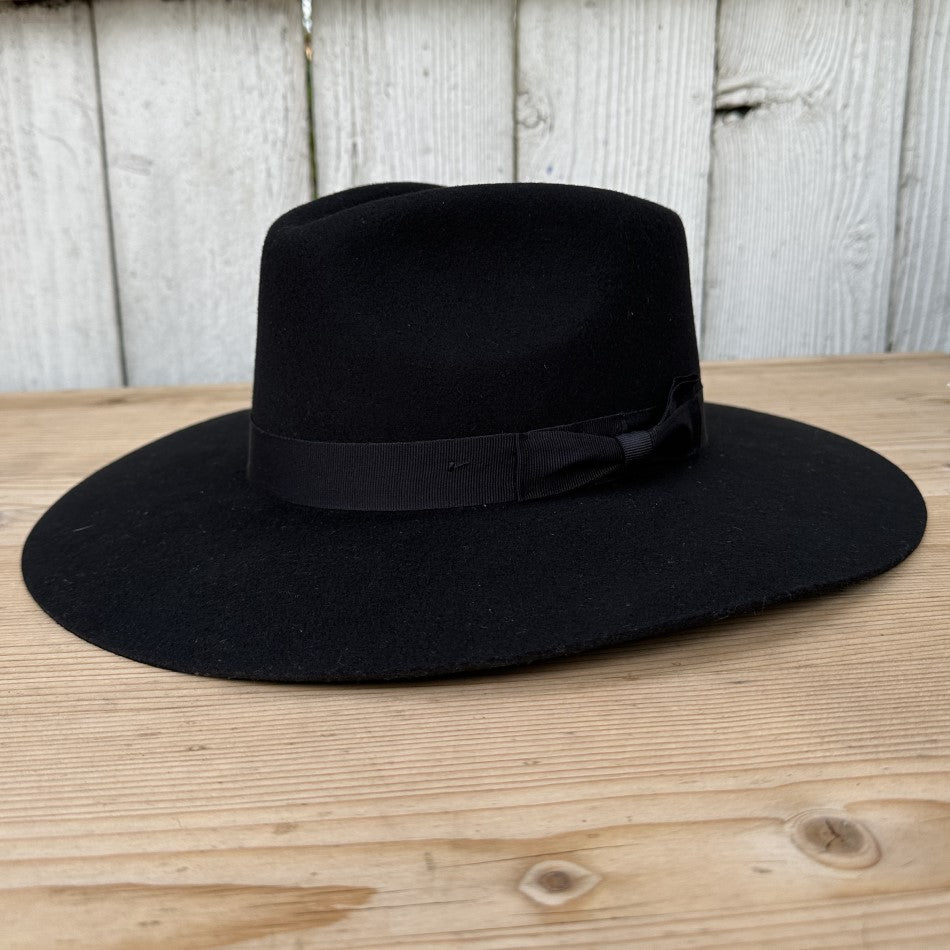 Este es el sombrero Indiana, ideal para agregar un toque vaquero a tu atuendo. Hecho en México con lana de alta calidad, este sombrero de color negro cuenta con una falda de 4 1/4" y una copa de 3 1/2". Es un sombrero fino, perfecto para las mujeres que buscan elegancia y estilo western. Disponible en varios colores para adaptarse a cualquier ocasión.