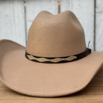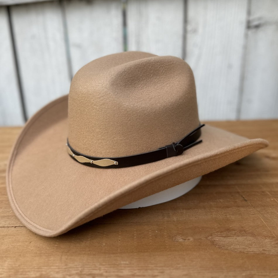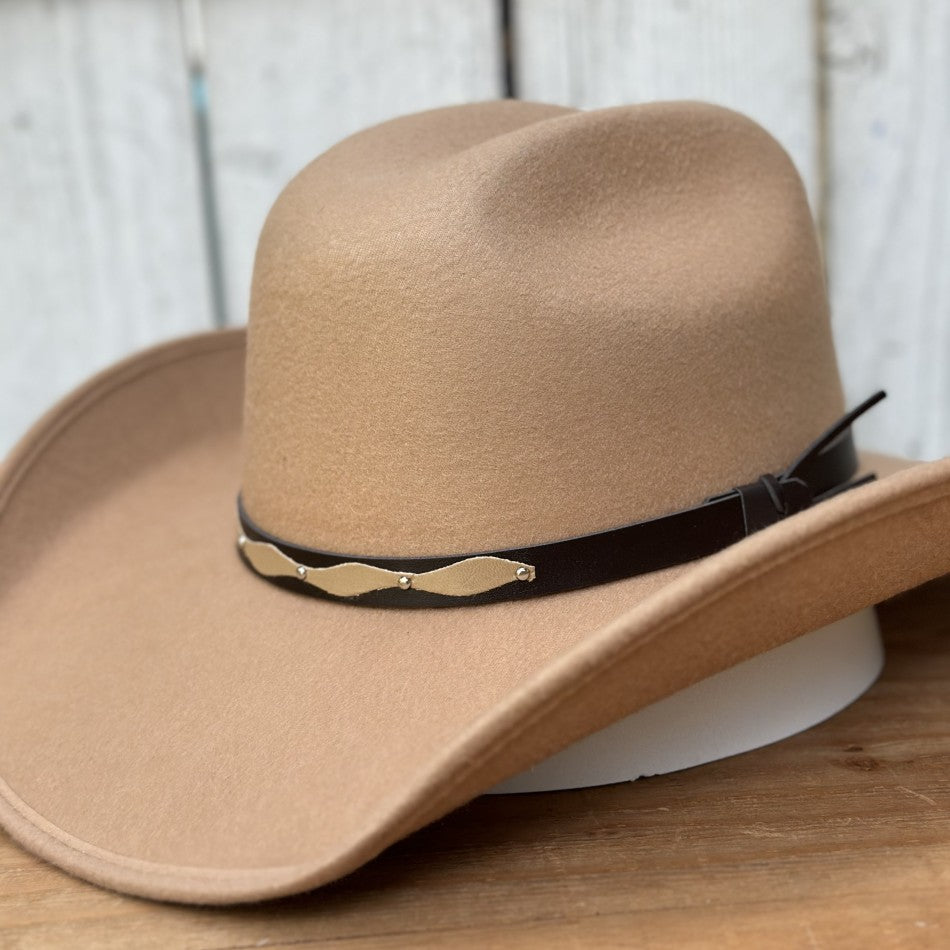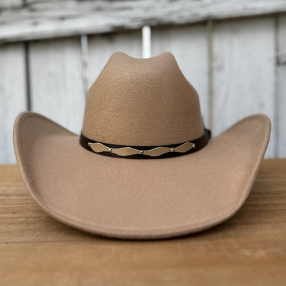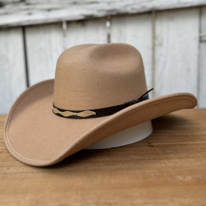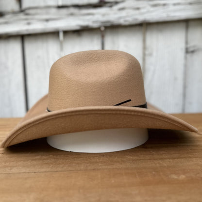 Este es el estilo Oscar Dubetina en color beige. Una texana con un acabado aterciopelado gracias a su material de dubetina, ofreciendo un look clásico y auténtico. Tiene una copa de 4 1/2” y una falda de 4 1/4”, brindando una estructura bien definida. La toquilla puede variar con respecto a la que se muestra en la imagen, pero cualquiera le da un toque vaquero bonito. Hecha en México, esta texana es una opción muy económica para quienes buscan un estilo tradicional sin gastar demasiado.